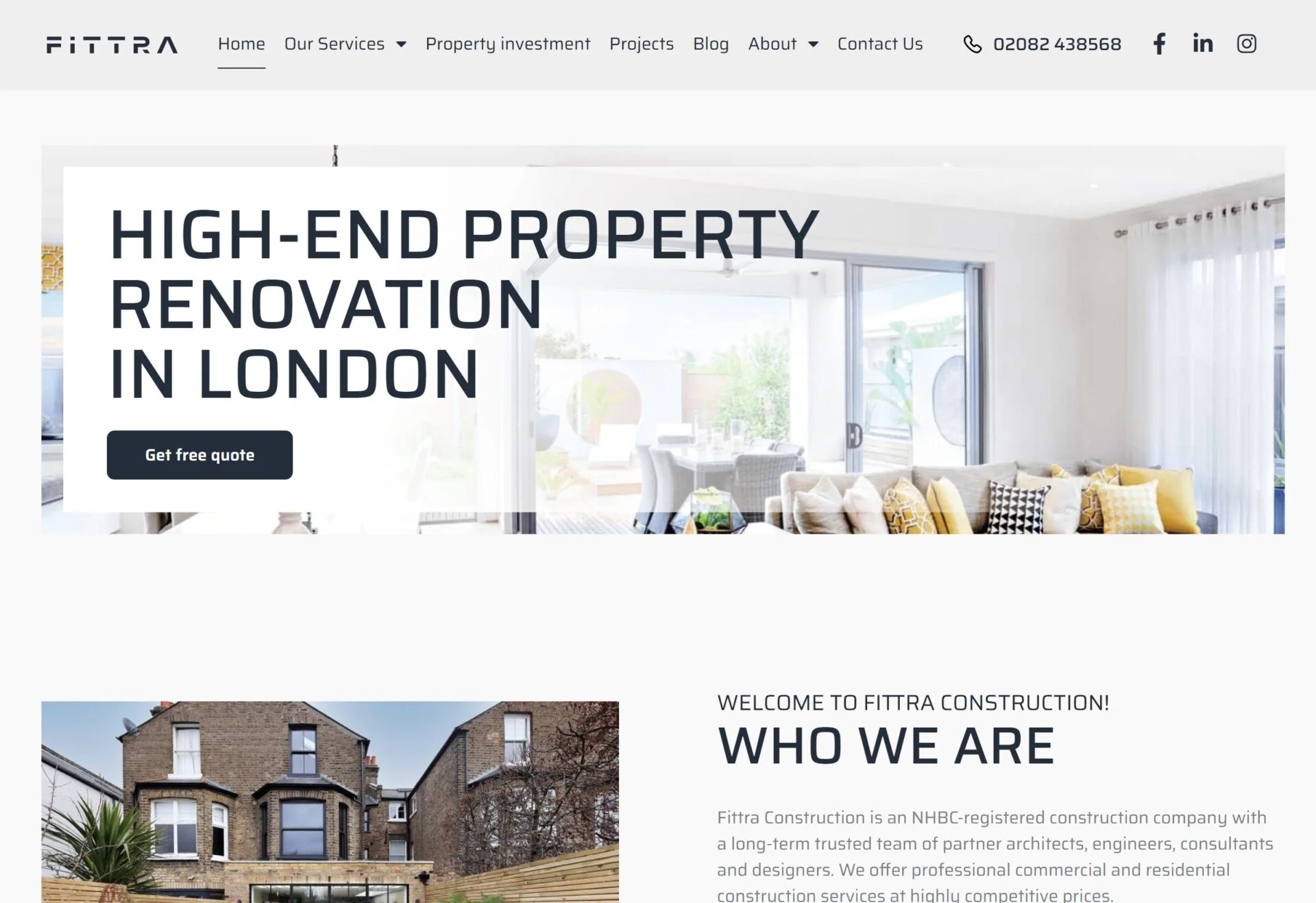 I was hired as a web developer for a UK business that provides high-end property & construction renovations Their current website was outdated, slow and did not provide an intuitive user experience. The company wanted to update their website design and improve user experience, but also maintain their existing content and SEO positions.